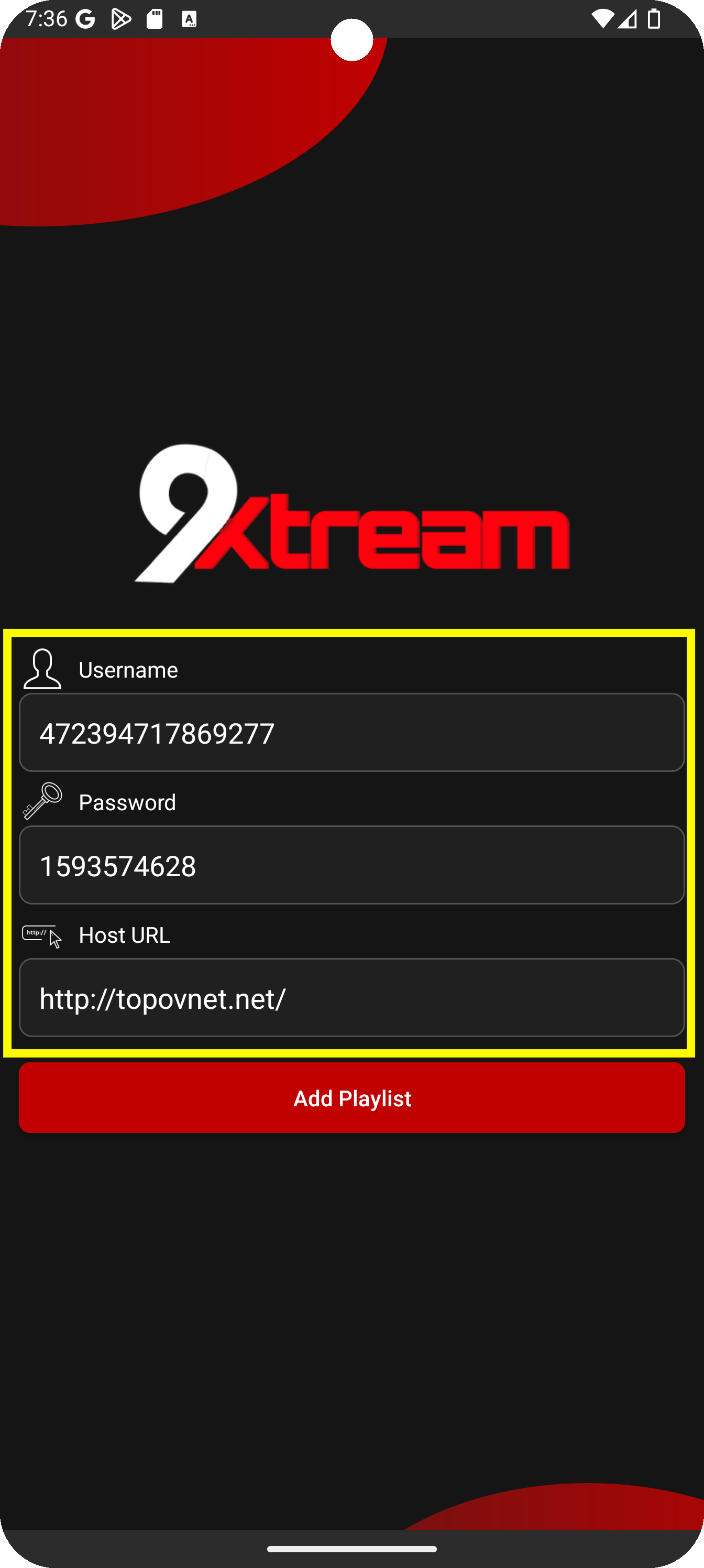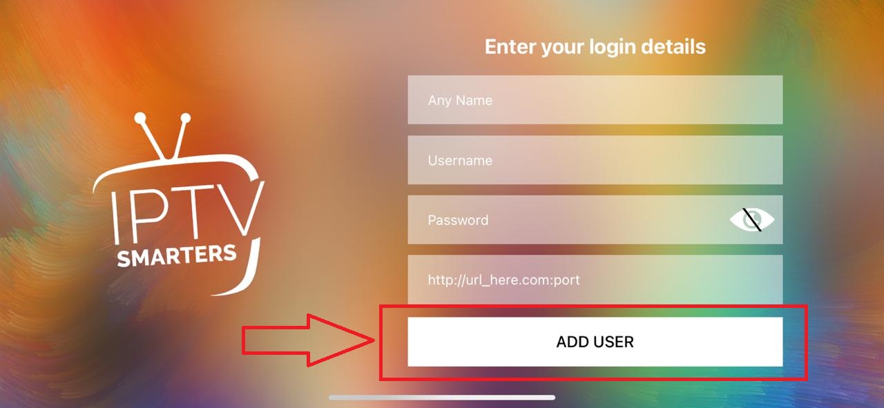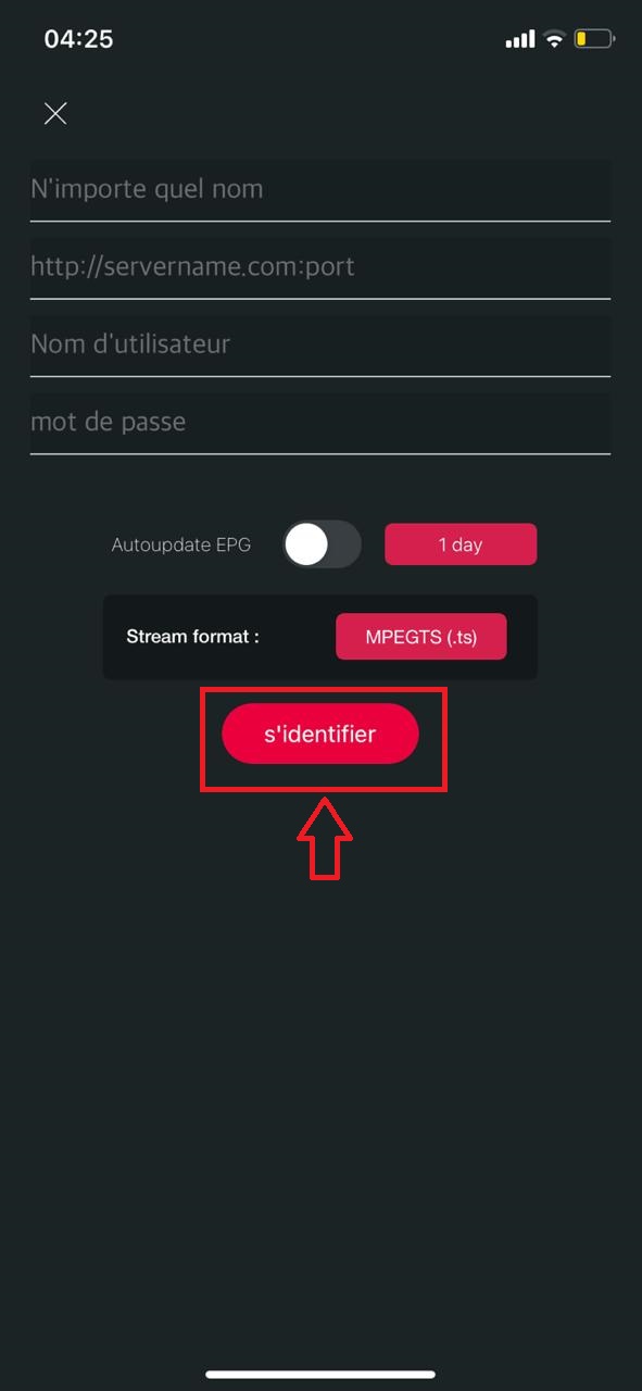 ⦁ Geben Sie die Anmeldedaten ein, die Sie in den per E-Mail erhaltenen Xtream-Codes
