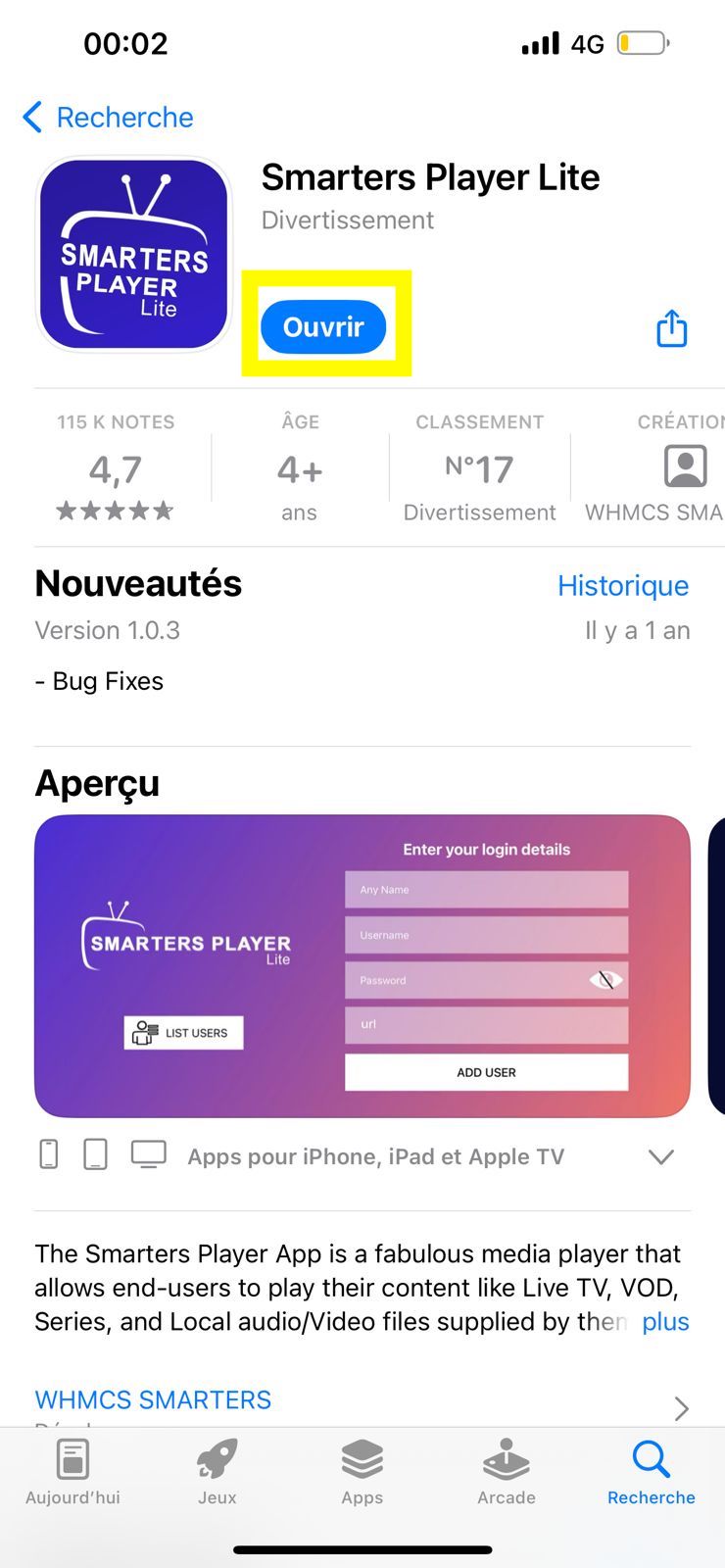 Smarters Pro LITE auf Ihrem Gerät.