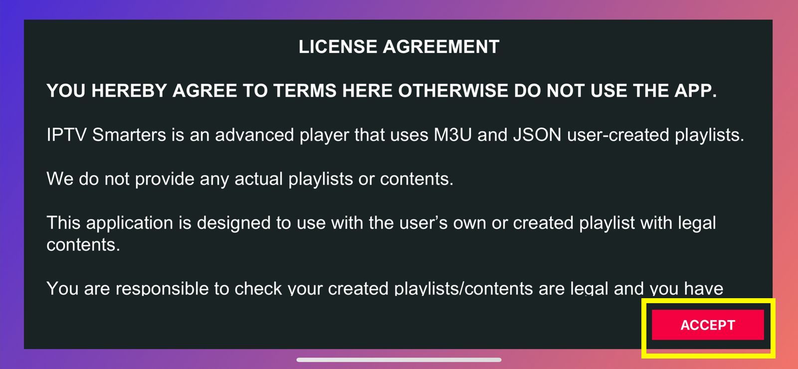 ⦁ Wenn Sie die IPTV Smarters Pro LITE-App zum ersten Mal starten, werden